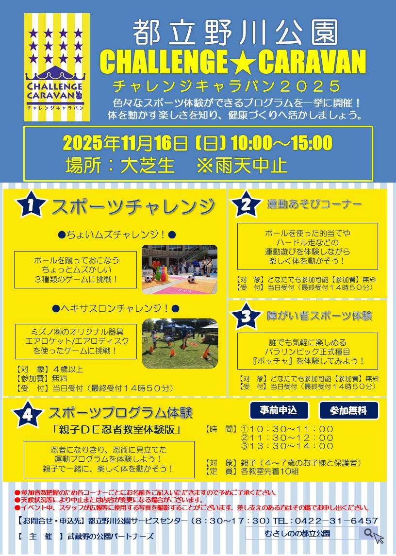【野川公園】11/16(日)開催!チャレンジキャラバン2025