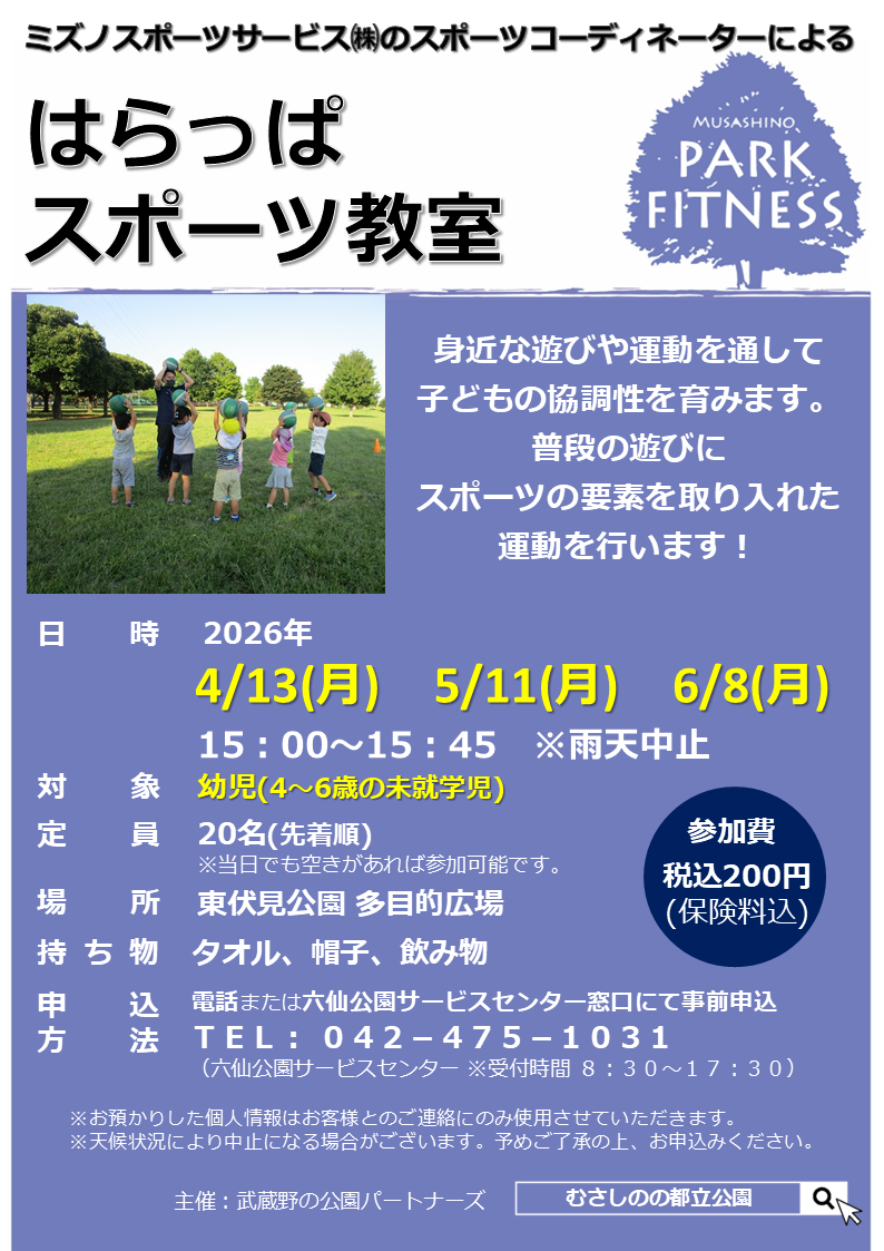 【東伏見公園】5/11(月)はらっぱスポーツ教室