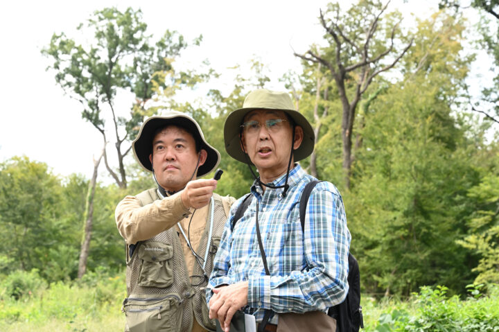 ↑国際基督教大学(ICU)内の雑木林再生プロジェクトについて、中嶋隆理事(左)にお話を伺いながら見学