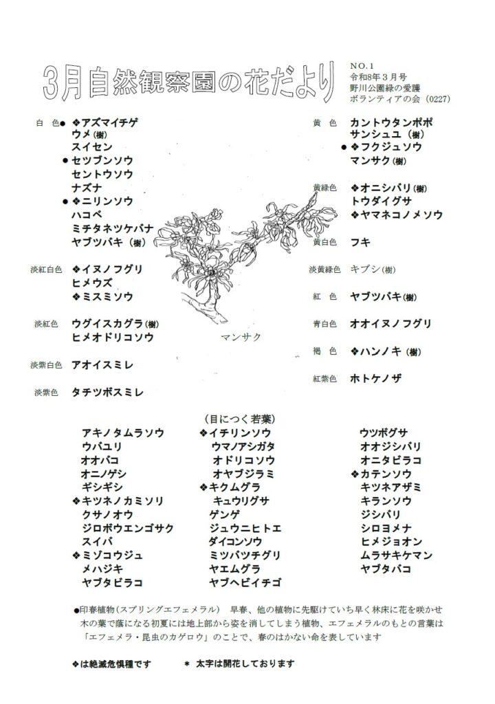 さて、3月上半期の自然観察園の花だよりをお知らせします♪