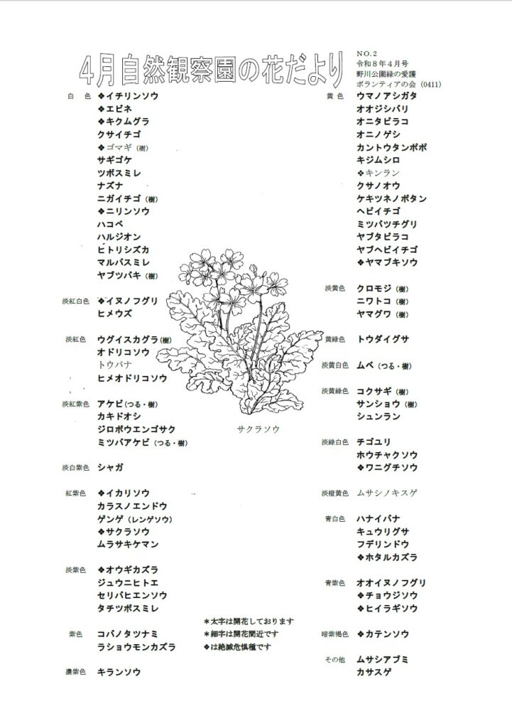 自然観察園や管理所で配布している「花だより」が更新されました。