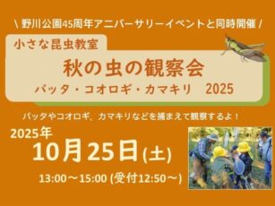 【野川公園】10/25(土)小さな昆虫教室「秋の虫の観察会 ~バッタ・コオロギ・カマキリ2025~」